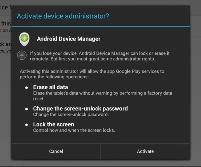 You’ll now be taken to the settings for the app, where a pop up box will ask if you want to activate the device administrator? Agree to this and your device will now have access to all the security features.