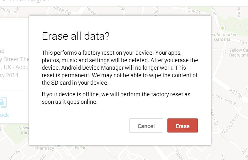 The Lock option will now allow you to remotely create a new password for the lock screen, while Wipe is the choice of last resort. Essentially it’s a factory reset which removes all of your data from the device.Very effective in the event of a theft.