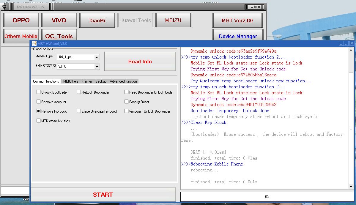 tick remove frp lock then click start button