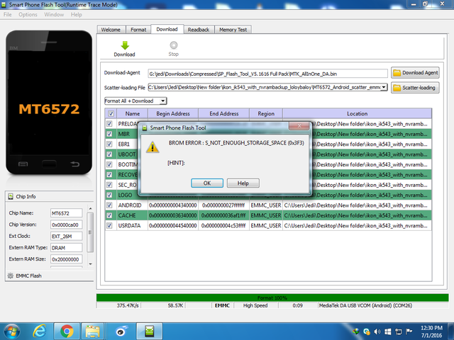 tried flash with spft error
